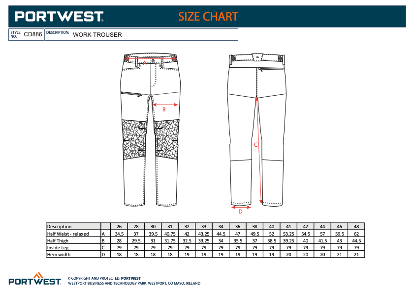 Portwest CD886 The 4 pockets provide excellent storage without adding bulk to the garment. Side elastic and 4 way stretch provide superior comfort and suitability on this work trouser and all in a recycled polyester.